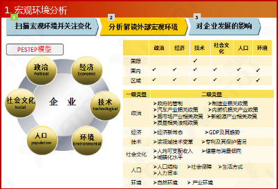 1: 戰(zhàn)略定位分析宏觀環(huán)境、行業(yè)、競爭、客戶等方面的信息情報經(jīng)過分析工具的加工處理,為SPAN分析提供必要輸入。